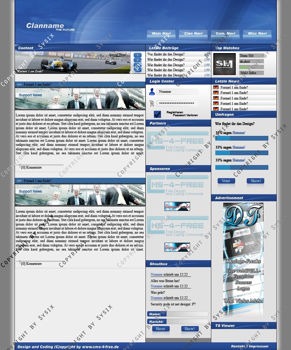 Du hast noch keinen Account auf ClanDesigns.de? Dann kannst du dich hier kostenlos registrieren!