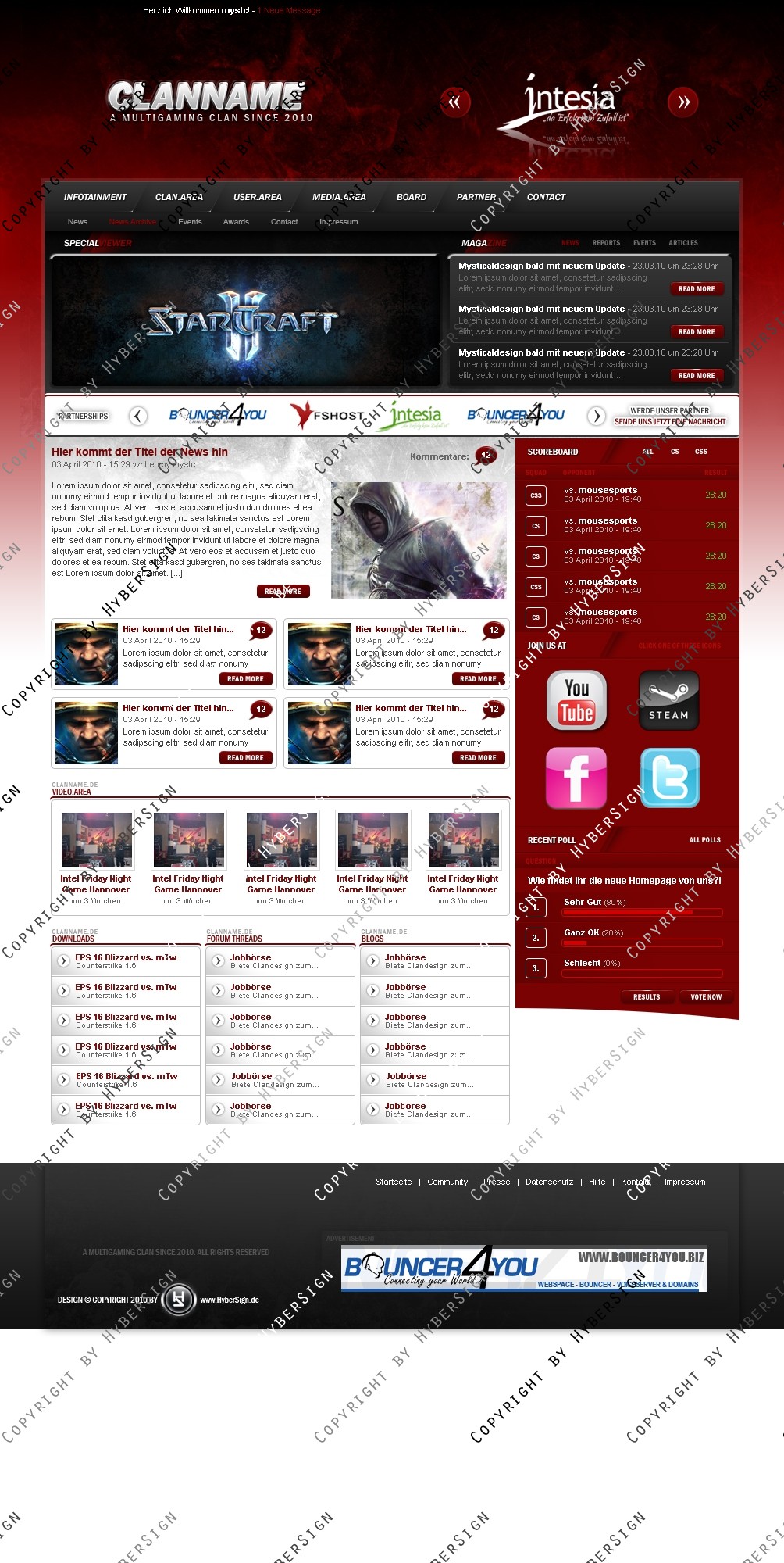 Ein sehr sauber aufgearbeitetes Clandesign mit moderner roter Farbgebung und modern aufgebautem Contentbereich.