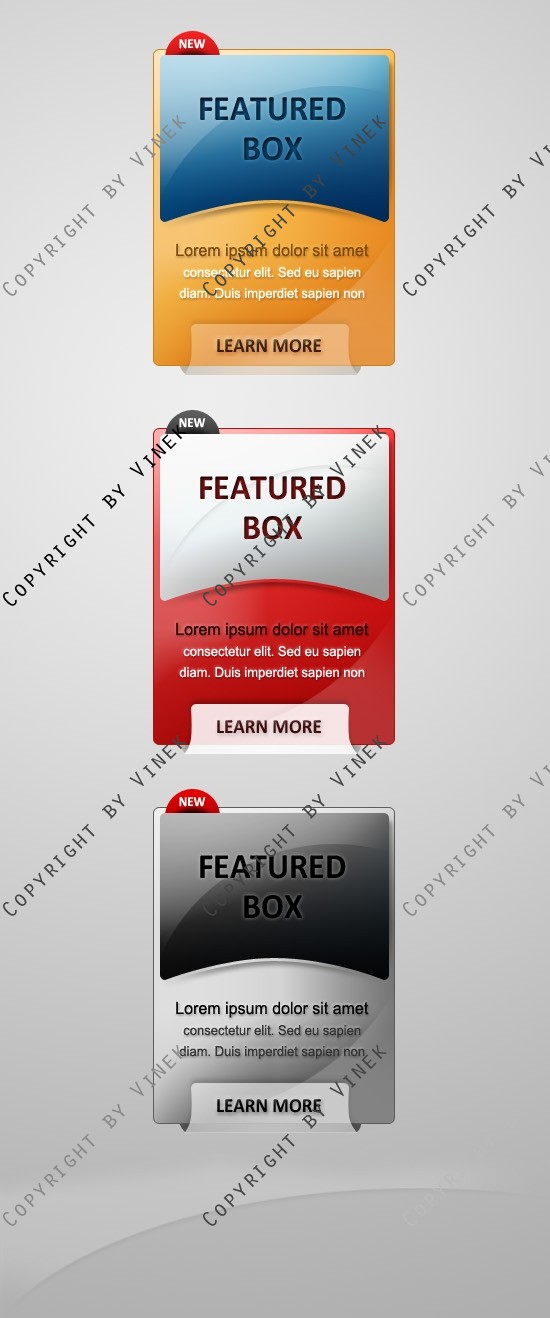 Dies sind 3 Featured Boxen in PSD Format.