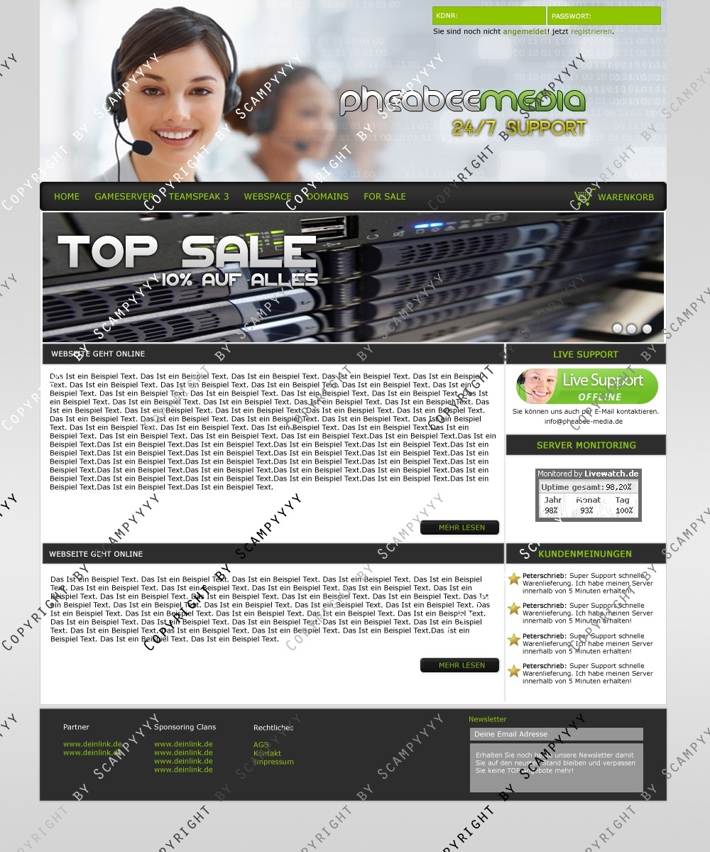 Hinweis: Hierbei handelt es sich nur um das Design, eine Anpassung an ein CMS-System ist nicht im Preis enthalten!