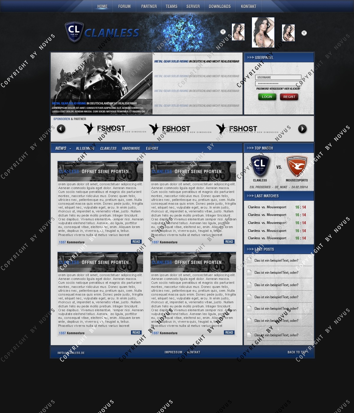 Das Logo ist nur zur Demonstration und wurde nicht von mir erstellt. Hier könnt ihr euch das Logo kostenlos runterladen: http://www.clandesigns.de/logo/3298/premium-clan-logo/