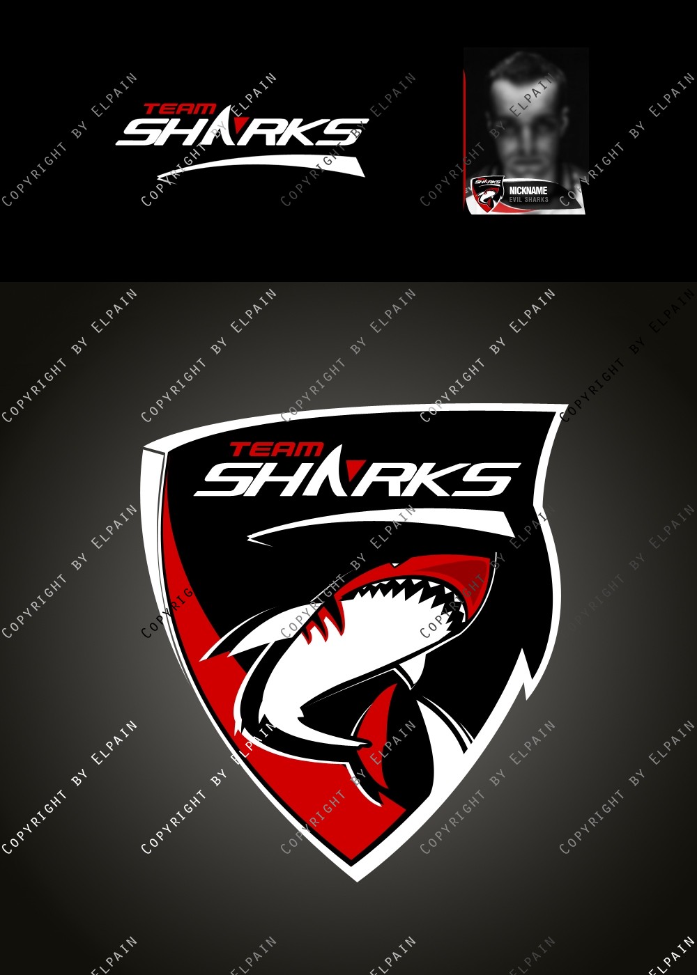 - Die .PSD Datei beinhaltet ALLE Ebenen als Formen, den original Team-Shark Schriftzug und eine kinderleichte Vorlage für den eigenen Clannamen. (Schriftarten liegen bei. S.o.)