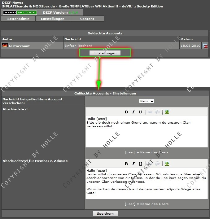 Admins können diese Nachrichten direkt einsehen und können eine Nachricht empfangen, sobald jemand seinen Account gelöscht hat. Außerdem können sie einen eigenen Text eingeben, welcher als Abschiedstext angezeigt wird.