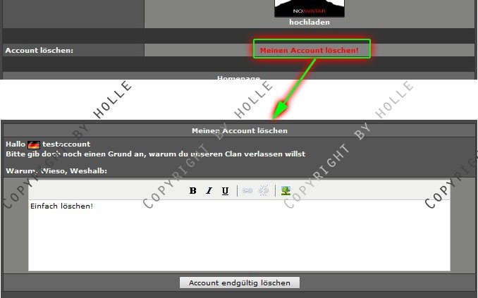 Sollten sich einmal von eurer Seite verabschieden wollen und Ihren Account dementsprechend löschen, gibt Ihnen dieser Mod die Möglichkeit, eine Nachricht zu schreiben, warum sie ihren Account löschen.
