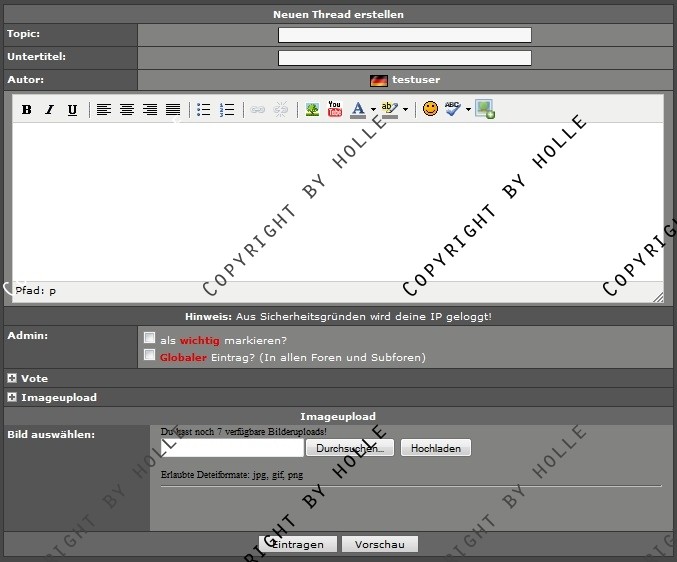 + ...können direkt Bilder im Forum während des Thread oder Post erstellens uploaden