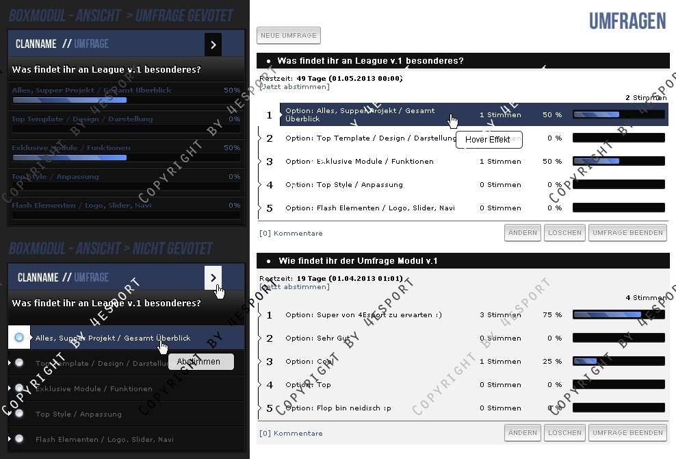Hier erhalten Sie für ihre Clanhomepage ein Professionelle Poll/Umfrage Modul Erweiterung.