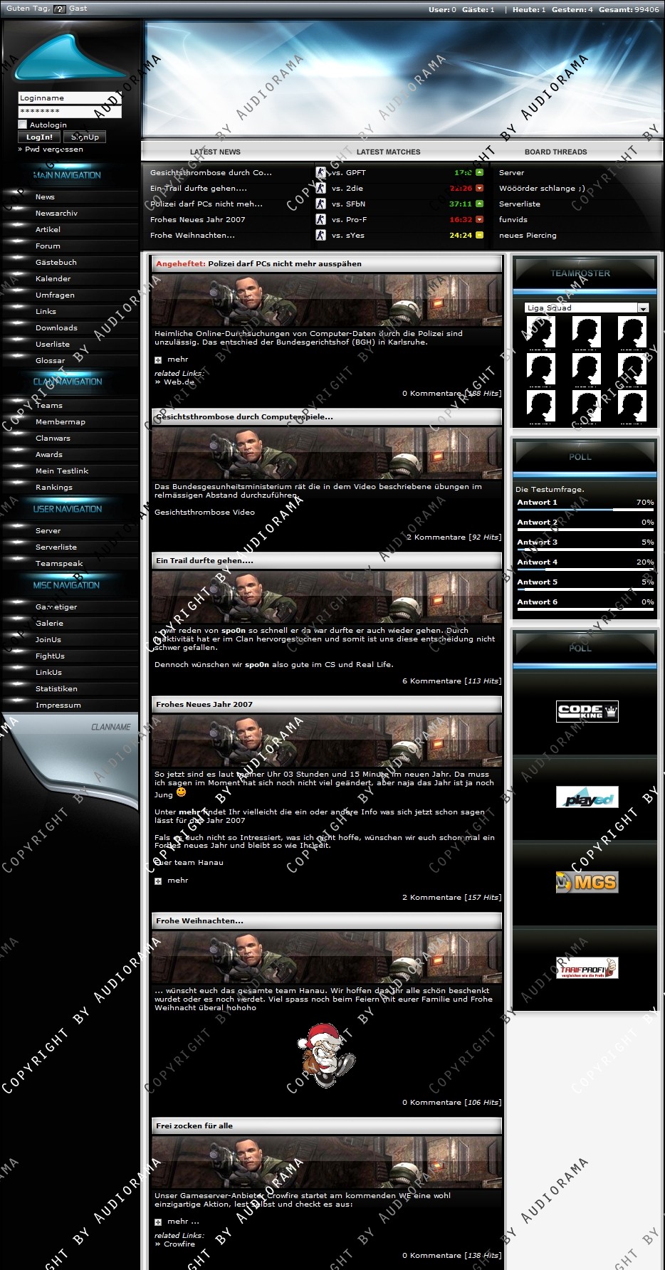 Du hast noch keinen Account auf ClanDesigns.de? Dann kannst du dich hier kostenlos registrieren!