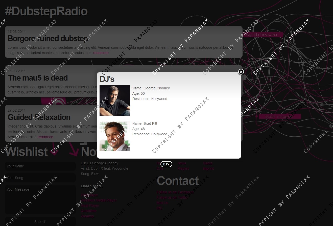 • Ajax Call für Radio, Dj's, Playlist und Imprint