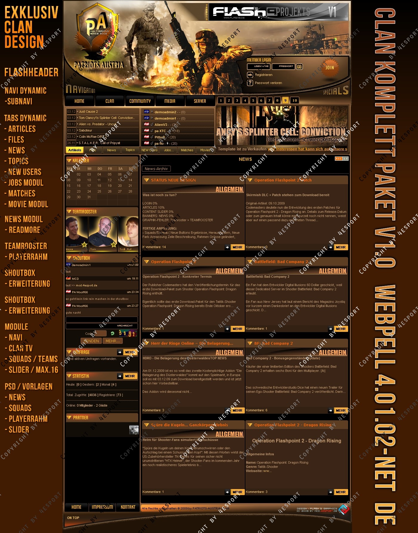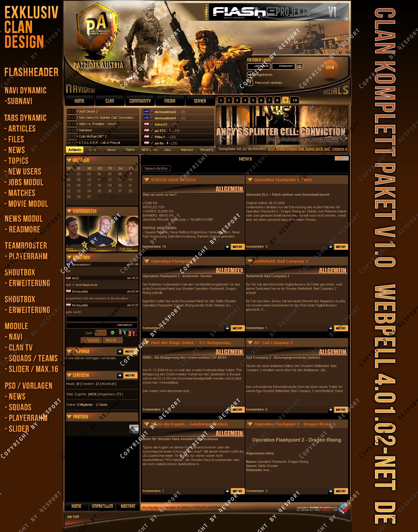 Design PSD Inkl. : News-Vorlage, Squads-Teams-Vorlage, Slider-vorlage, PA-Logo, Header- Links (hinter Logo der graphik)