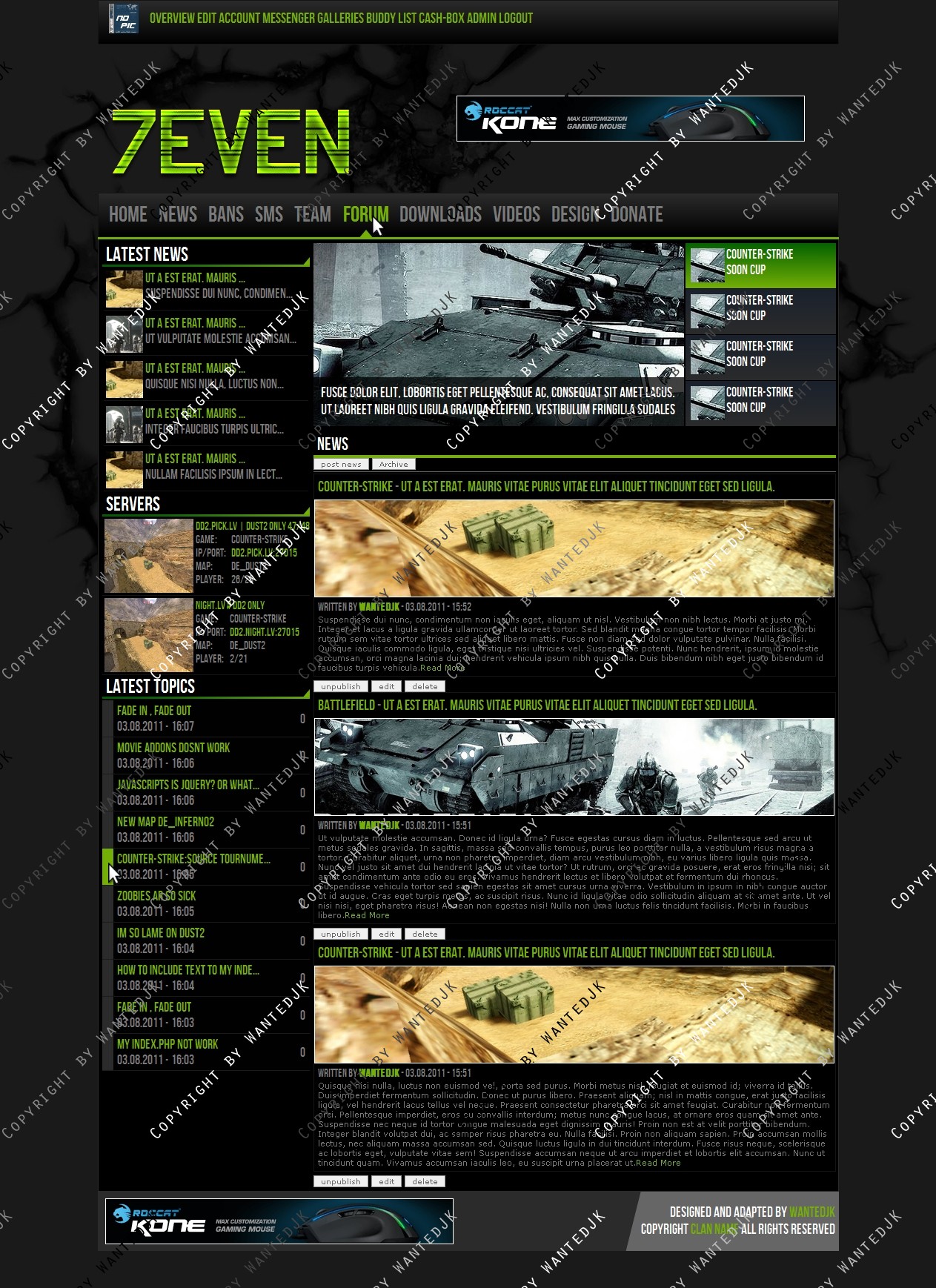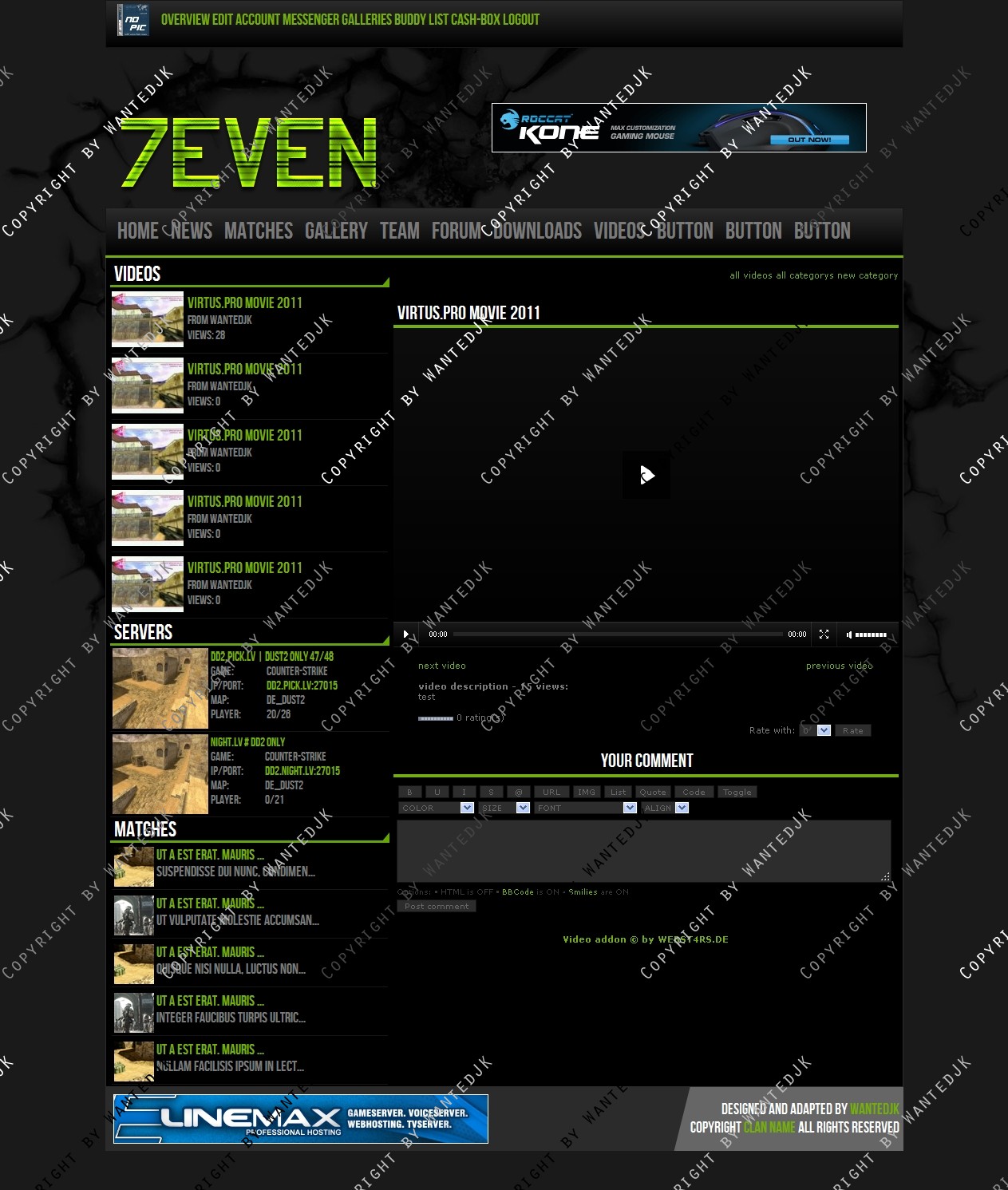 Include templates: News , Forum , Matches , Profile