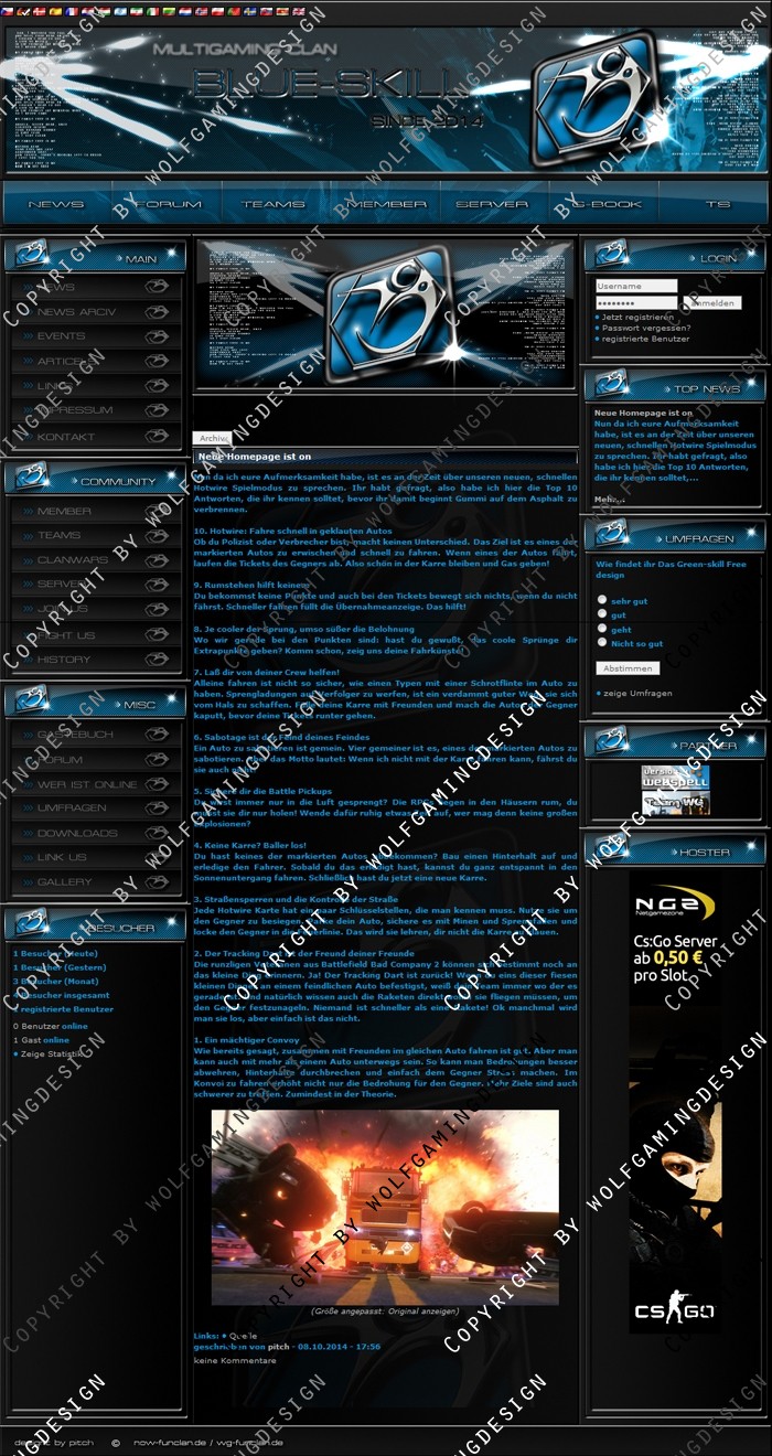 ist ein schlichtes Design was an webSPELL4.2.3a angepasst ist und was ihr an euren persönlichen Geschmack anpassen könnt.
